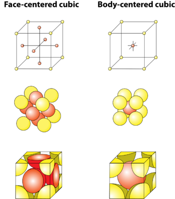 FCC (Face-Centered Cubic: face-centered cubic lattice) and BCC (Body-Centered Cubic: body-centered cubic lattice) structure diagrams