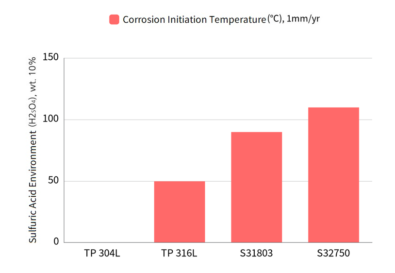 All duplexs have corrosion resistance in diluted sulfuric acid atmosphere compared to 304L and 316L.