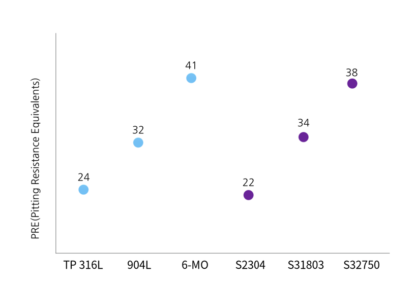 PRE comparison of austenitic steel and duplex