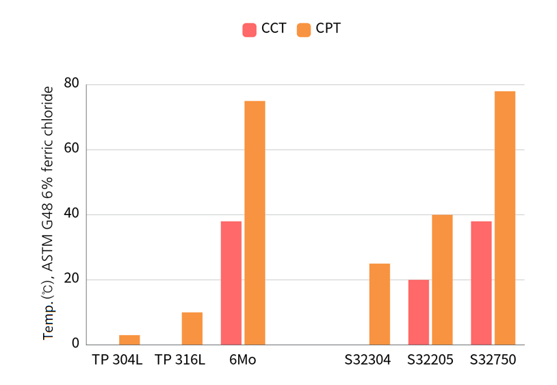 CCT (Critical Crevice Temperature) / CPT (Critical Pitting Temperature) comparison